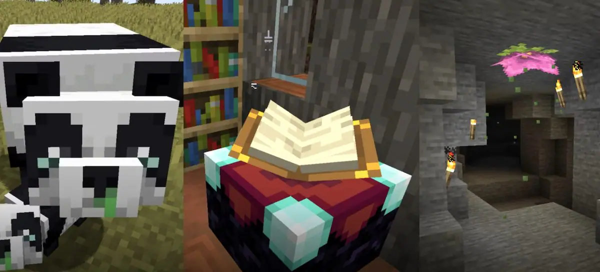 در بخش گیاهان، «گل اسپور» که در آپدیت Caves & Cliffs و در غارهای سرسبز یا همان لاش کیوها معرفی شد، یک شاهکار اتمسفریک است. این گل صورتی بزرگ که از سقف آویزان میشود، ذرات معلقی (هاگ) را در هوا پخش میکند که هیچ تاثیر فنی روی گیمپلی ندارند و فقط برای زیباتر کردن محیط و ایجاد حسی رویایی در فضا طراحی شدهاند.