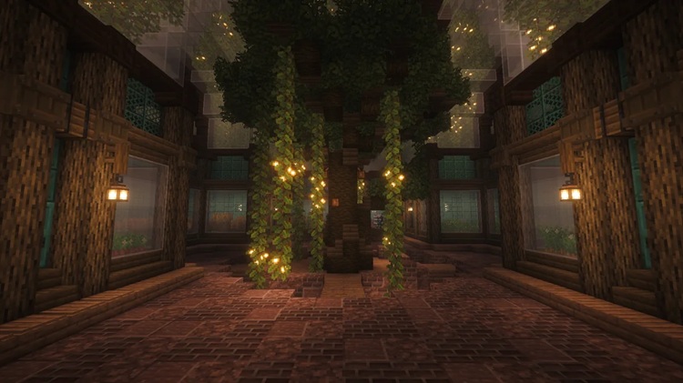 اگر شما به تصویر مختلف این سازه نگاه کنید، متوجه خواهید شد که سازنده در بخشهای مختلف آن انواع محصولات ماینکرفت را کشت کرده و میتواند برای همیشه شما را از شکار کردن بینیاز کند. همچنین این سازه میتواند پوششی برای مخفی کردن آیتمهای ارزشمند شما باشد؛ در واقع شما میتوانید الماسها را در بین گلدانها مخفی کنید!