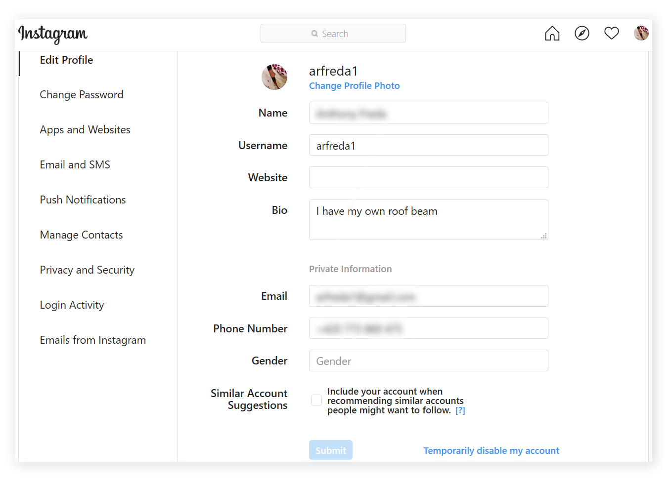 - بررسی اطلاعات تماس: مطمئن شوید ایمیل و شماره تلفن شما هنوز در بخش Personal Details فعال و در دسترس هستند. این کار برای برگرداندن اکانت در آینده حیاتی است.