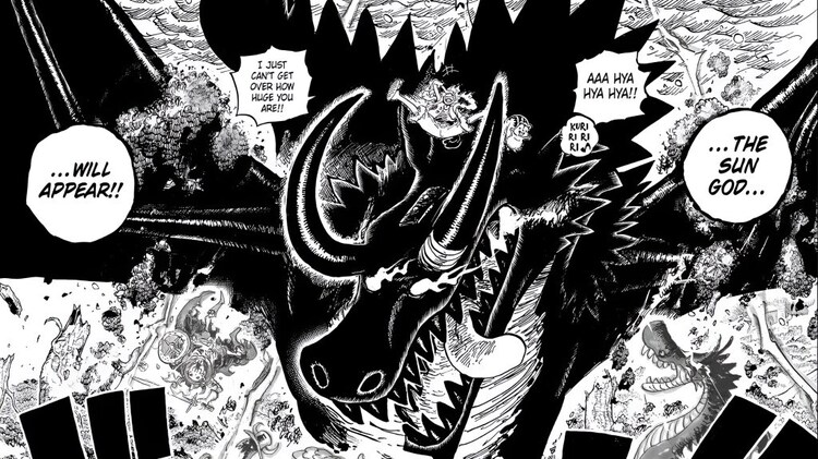 در حالی که این دو نفر به عنوان قویترین زوج الباف وارد صحنه میشوند، جارول (Jarul) شروع میکند به خواندن بخشهایی از متن باستانی هارلی (Harley). او از روز نادری میگوید که رعد و برق و برف با هم یکی میشوند و یک غول با حضورش آسمان را سیاه میکند. این صحنه با حضور هیولا و صدای کوبنده طبلهای آزادی (Drums of Liberation) تکمیل میشود که نشانه واضحی از بازگشت خدای خورشید نیکا (Sun God Nika) است. همین نشانهها کافی است تا بفهمیم این اتحاد چقدر حیاتی و سرنوشتساز است. اصلاً تعجب نکنید اگر بفهمیم که ۸۰۰ سال پیش هم دقیقاً چنین ترکیبی وجود داشته: اتحادی بین جوی بوی (Joy Boy) و کسی که در آن زمان صاحب این میوه شیطانی افسانهای بوده است.