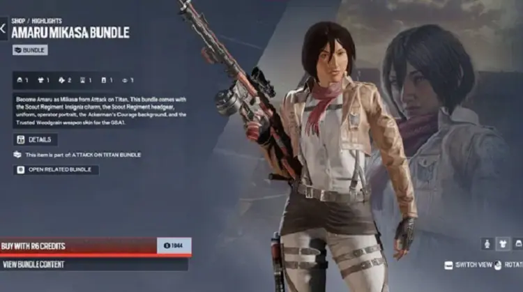 اگر قصد دارید هر دو باندل را خریداری کنید، بهتر است آن‌ها را جداگانه نخرید؛ زیرا باندل Attack on Titan هر دو مجموعه را با قیمت کاهش‌یافته ارائه می‌دهد. دارندگان Membership یا بتل‌پس پریمیوم می‌توانند این بسته را با ۳٬۶۷۲ کردیت R6 تهیه کنند، در حالی که سایر بازیکنان برای به دست آوردن هر دو مجموعه باید ۴٬۰۸۰ کردیت R6 پرداخت کنند.