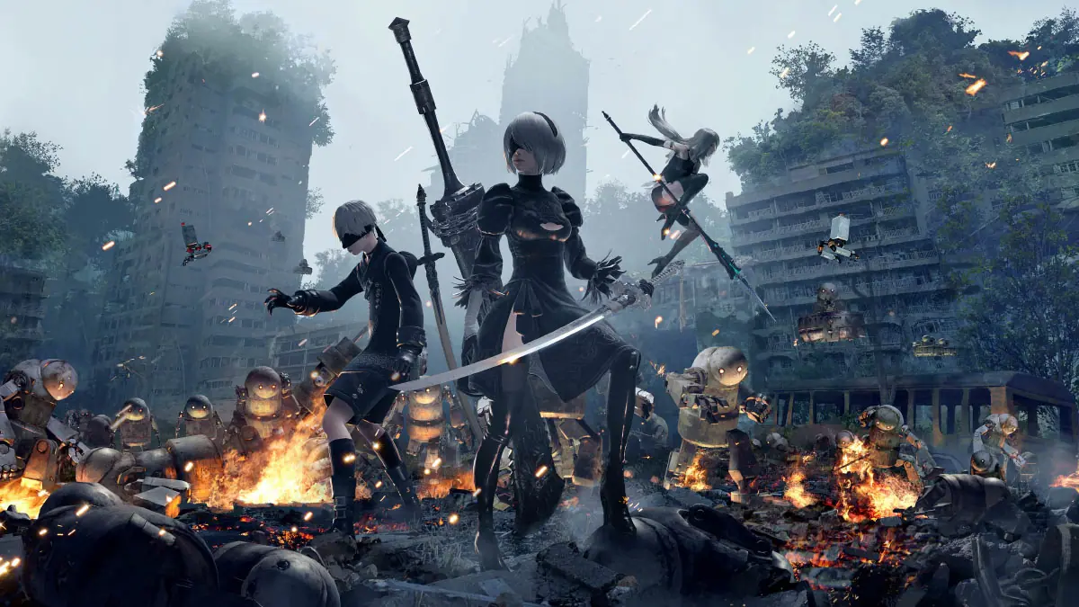 بازی NieR: Automata، دیگر اثر استودیو PlatinumGames، یک تجربه اکشن نقشآفرینی و فلسفی است که گیمر را به دنیایی پساآخرالزمانی میبرد. دو ربات به نام تو-بی و ناین-اس به سیاره زمین فرستاده میشوند تا بازماندگان انسانی را پس از حمله ماشینها نجات دهند؛ ماشینهای متخاصمی که توسط بیگانگان ساخته شدهاند. گیمر باید سه بار داستان را به انتها برساند و هر بار از دیدگاه شخصیتی مختلف روایت میشود. در هر بار روایت، نکات متفاوتی از نبرد بیپایان میان انسانها و ماشینها کشف شده که در کنار هم روایت کلی داستان را شکل میدهند. در ضمن، تصمیمات گیمر روی پایانبندی تاثیر مستقیم دارد.